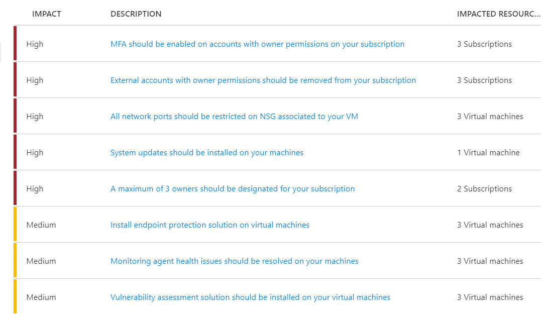 Security recommendation integrates with Azure Security Center to bring you security recommendations. Security Center helps you prevent, detect, and respond to threats with increased visibility into and control over the security of your Azure resources